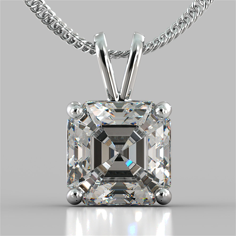 Asscher Cut Solitaire Pendant With Diamond…