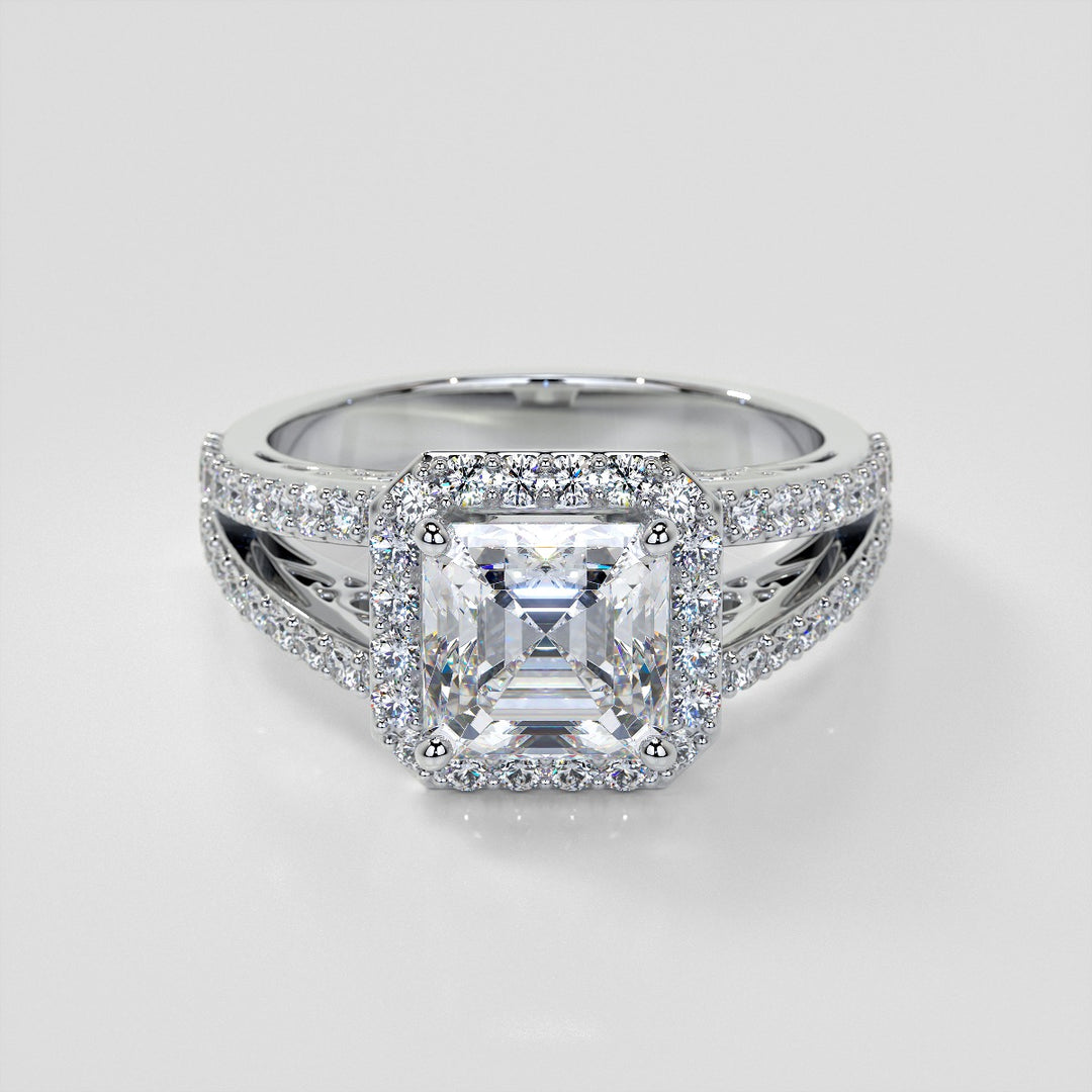 Asscher Cut Halo Engagement Ring With…