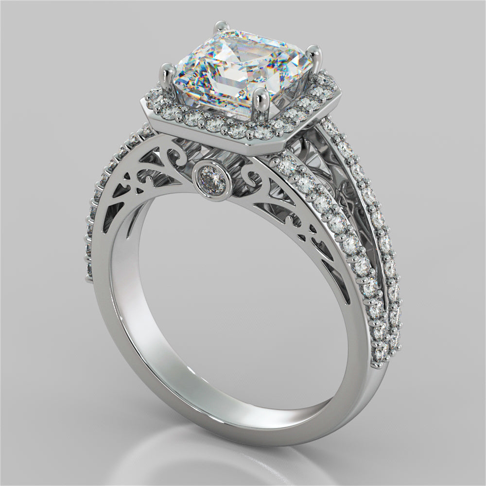 Asscher Cut Halo Filigree Style Engagement…