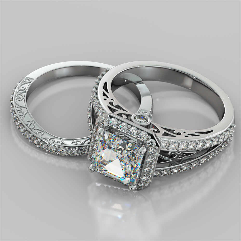 Asscher Cut Vintage-Style Wedding Set