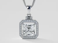 3.3Ct Asscher Cut Halo Pendant with 16" Chain Included