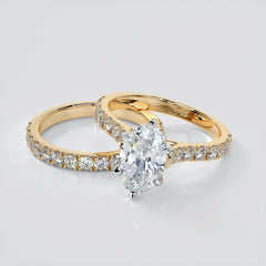 • Oval Cut Cathedral Scallop Style Engagement Ring With Accents