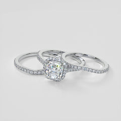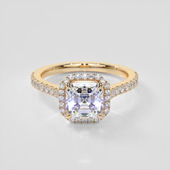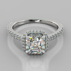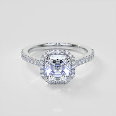 Asscher Cut Halo Engagement Ring With Accents