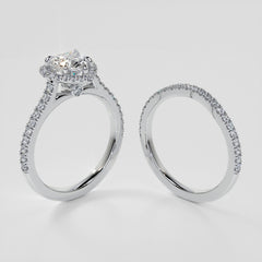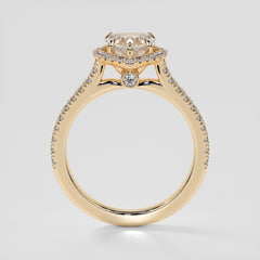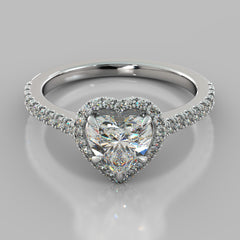 Nothing says “I love you!” like this stunning heart shaped halo engagement ring. This magnificent Heart shape solitaire is swaddled in a circle of shimmering pave style accents that enhances the timeless beauty of this stone. The Heart shape embodies the sentiment of love and affection that has captivated hearts for centuries.