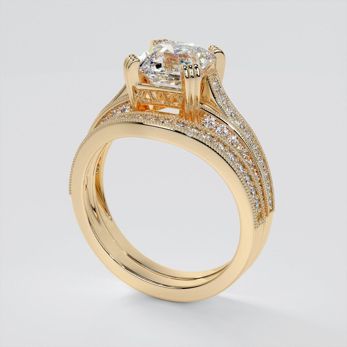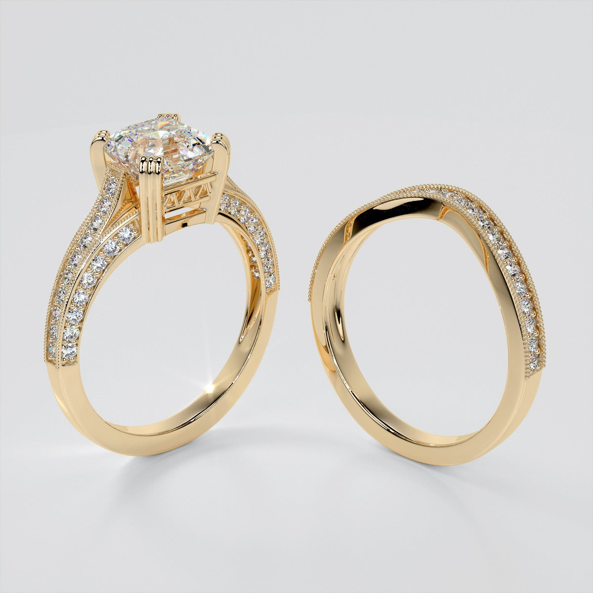 Bought the Lab Grown Diamond Asscher Cut Tiffany Style Engagement Ring band as an anniversary gift. The diamonds are brilliant and the gold is rich—exactly what I hoped for.