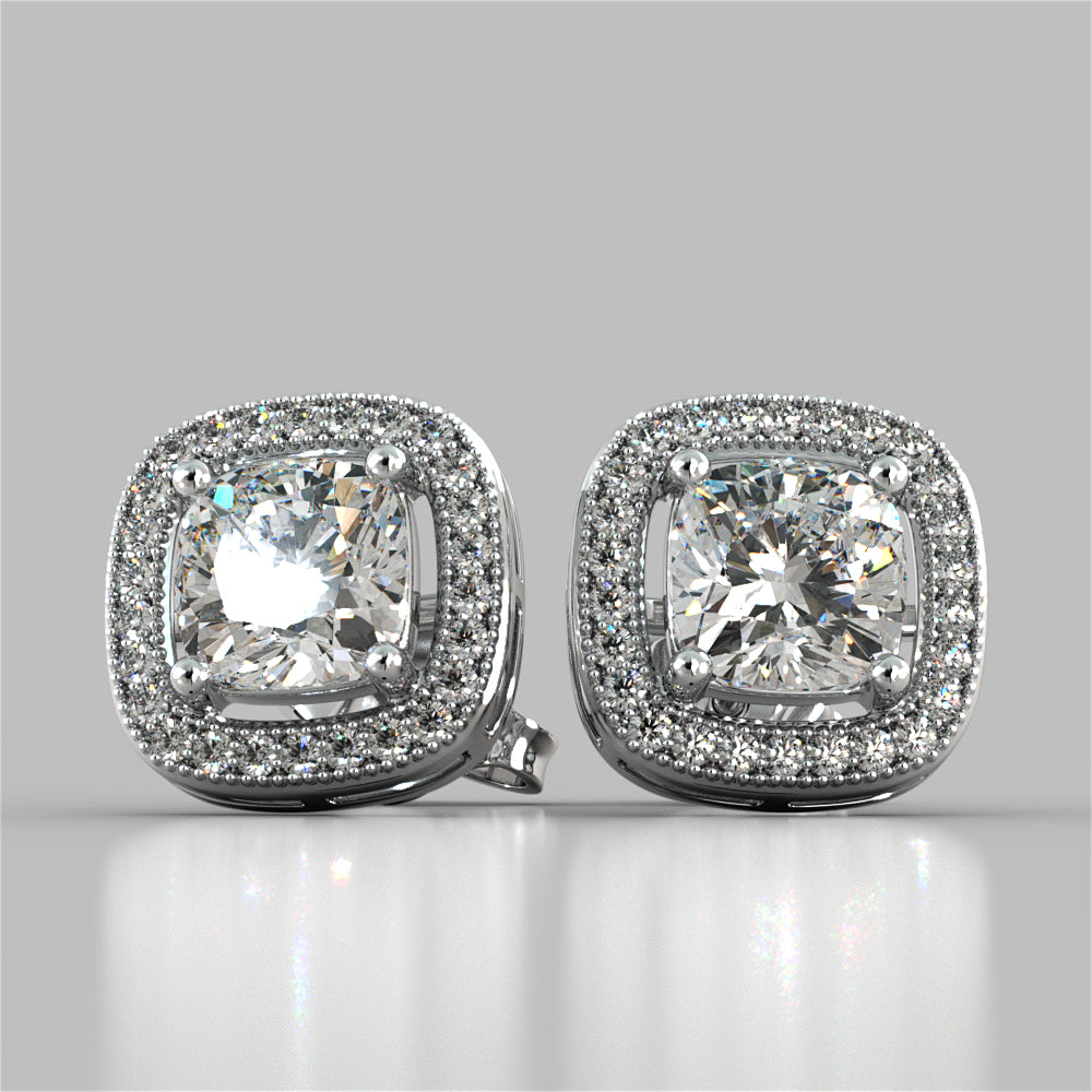 2.76CTW Cushion Cut Beaded Halo Earrings