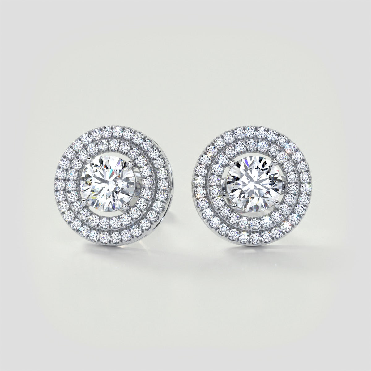 2.52CT Round Cut Double Pave Style Halo Earrings