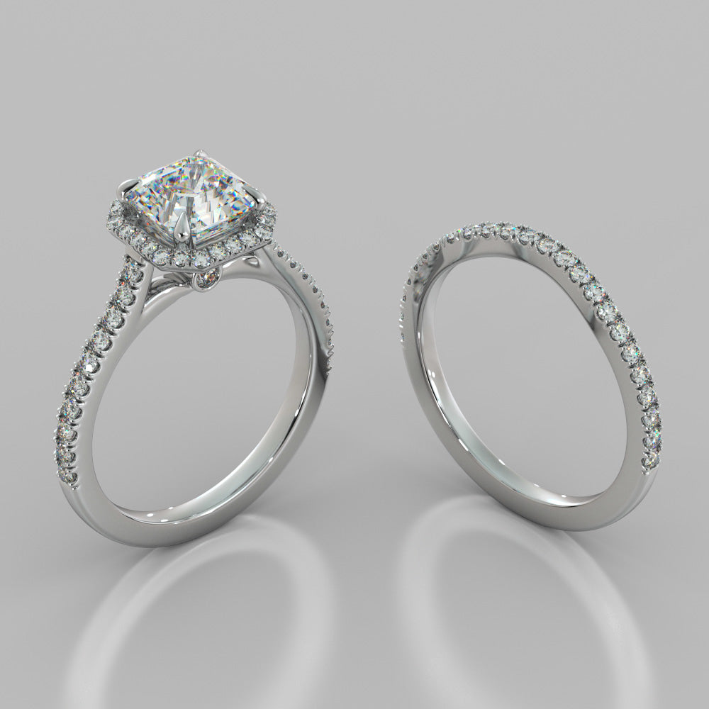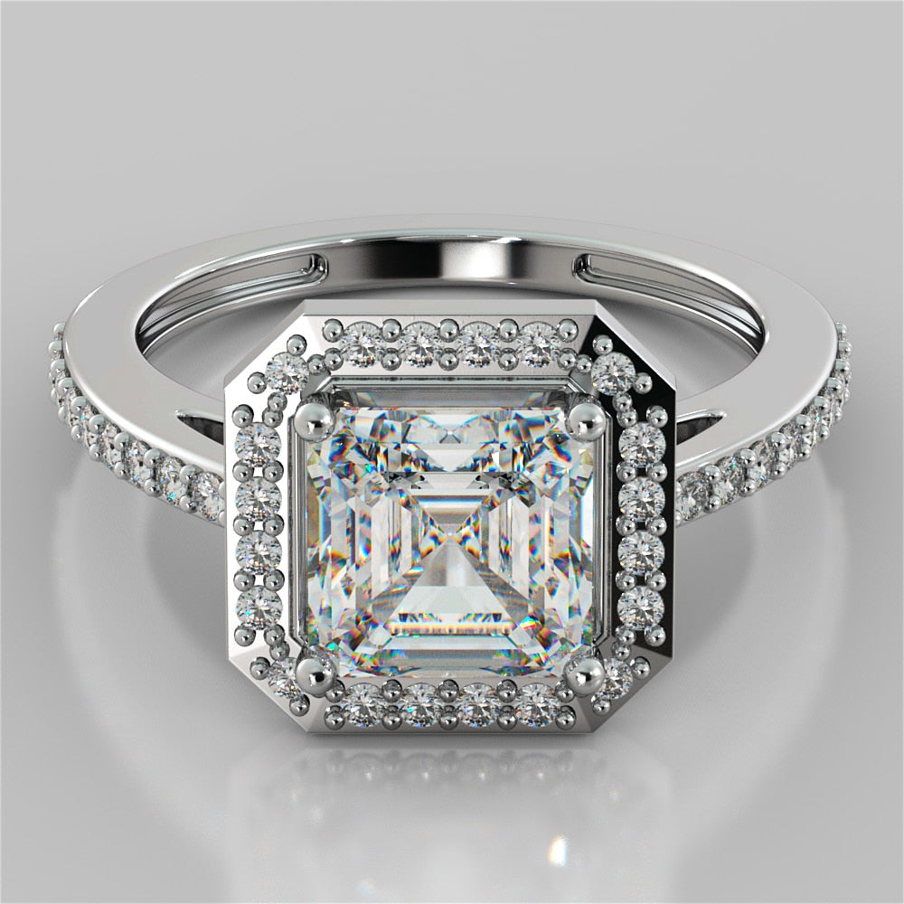 Asscher Cut Cathedral Style Two-Tier Pavé…