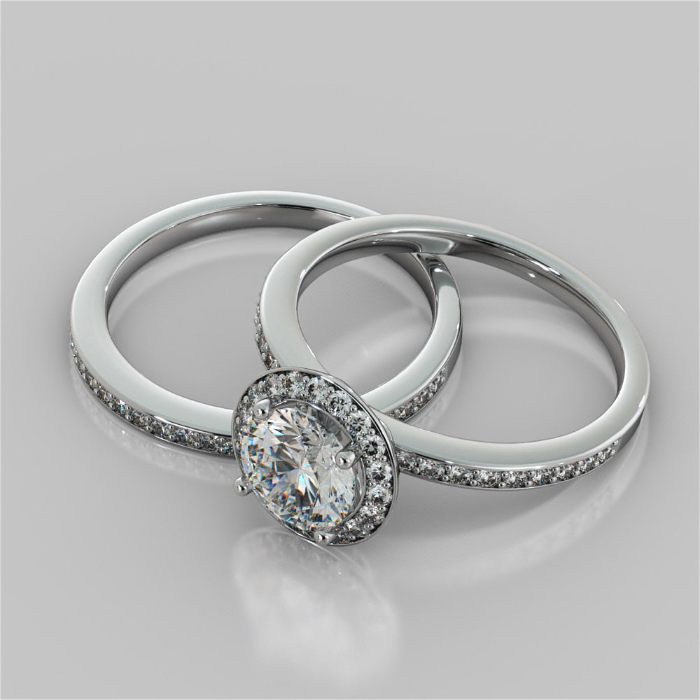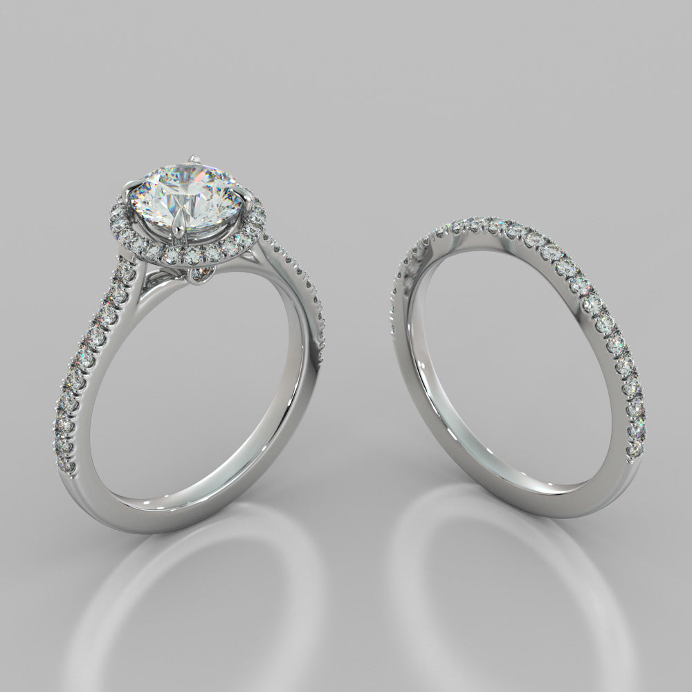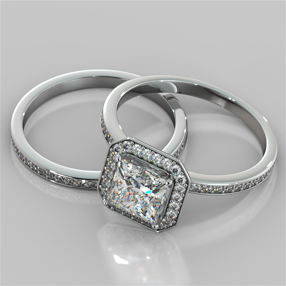 Pavé-Style Double Halo Radiant Cut Wedding…