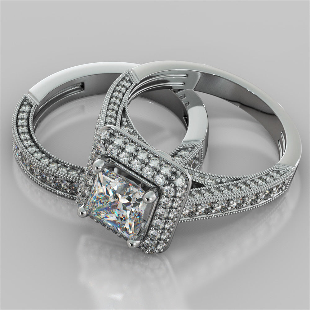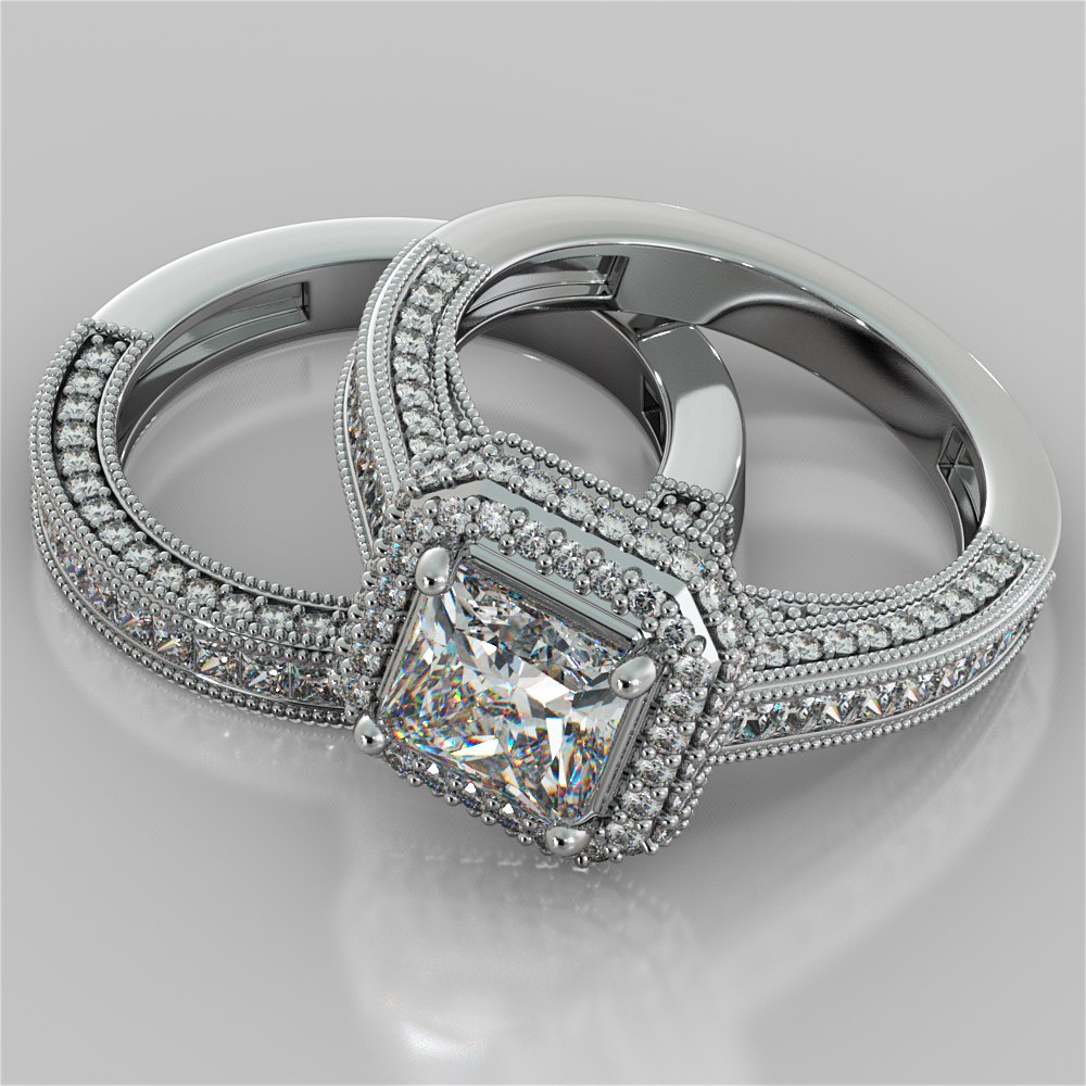 Cathedral Crisscross-Style Princess Cut Wedding Set