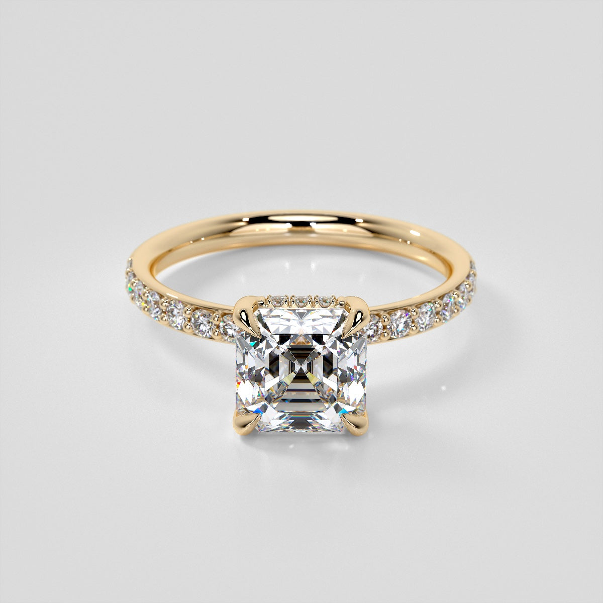 Lab Grown Diamond Asscher Cut Hidden Halo Engagement Ring
