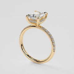 Radiant Cut Hidden Halo Engagement Ring with Accents