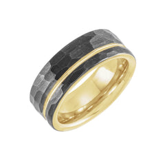 Black & 18K Yellow Gold PVD Tungsten 8 mm Grooved Band With Hammer Finish