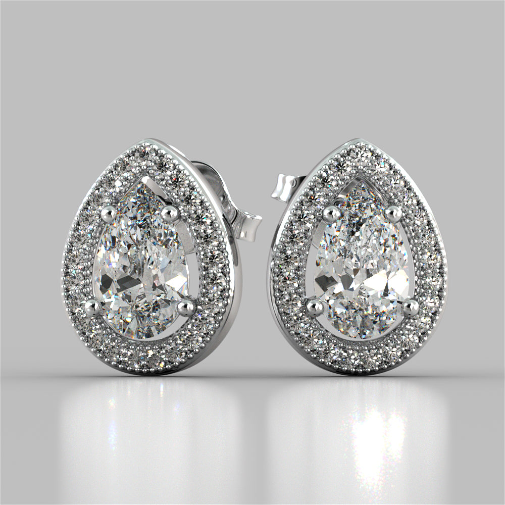 Emphasize any ensemble with these divine earrings. A stunning teardrop style setting holds the beautiful center stones within a brilliant simulated diamond halo. Whimsical beaded milgraine detail gracefully surrounds this delicate piece. An ideal way to spoil yourself or someone special.