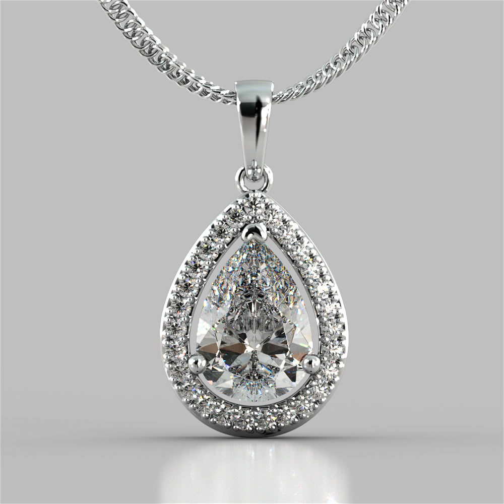 - Pear Cut Tier Halo Pendant