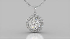 4.36CT Round Cut Milgrain Tier Halo Pendant