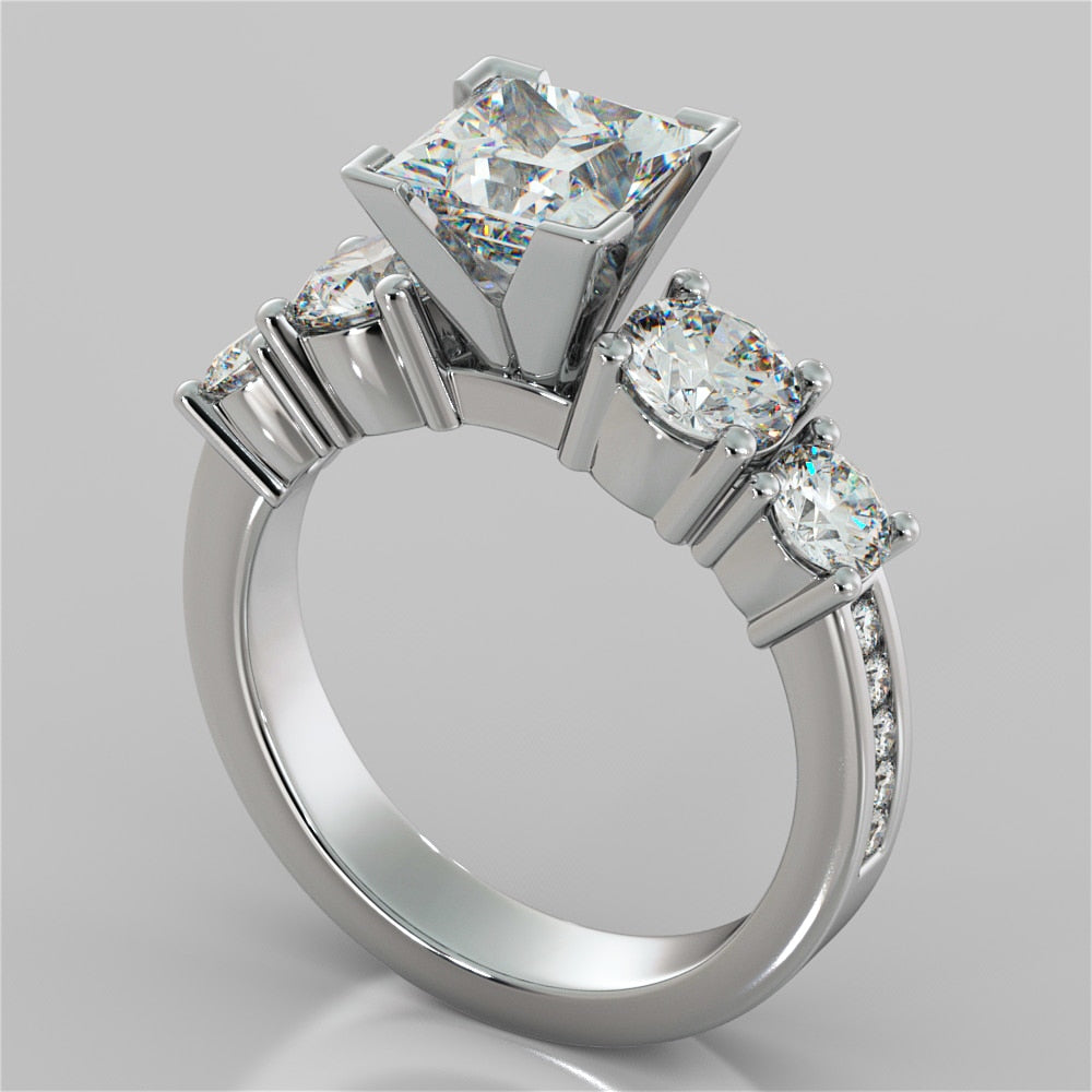 3.11Ct Princess Cut 5-Stone Engagement Ring…