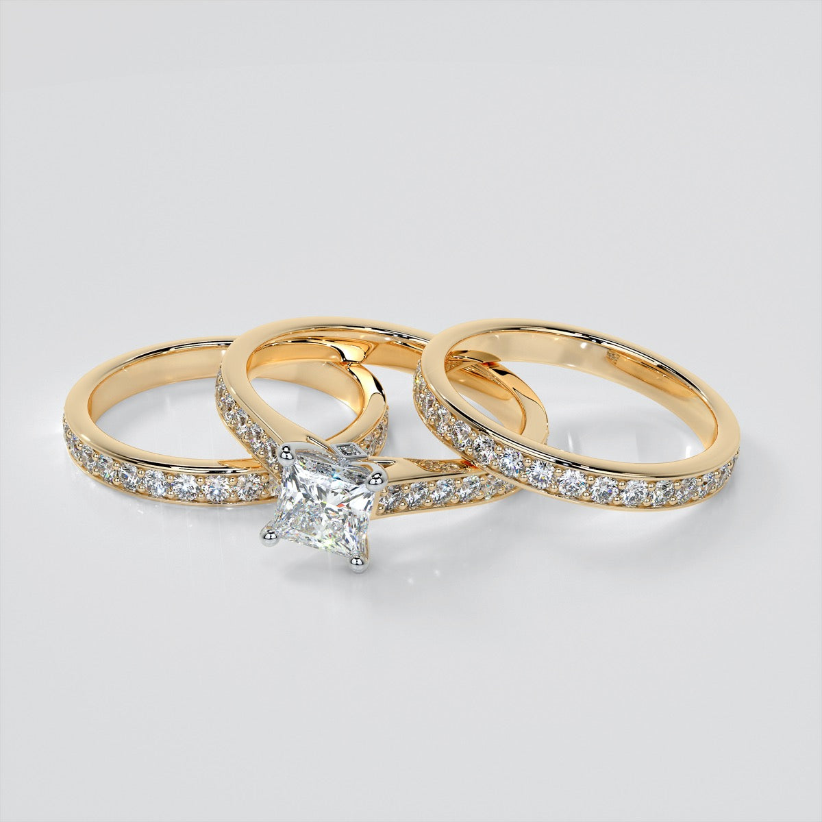 • Princess Cut Accented Cathedral Wedding Set