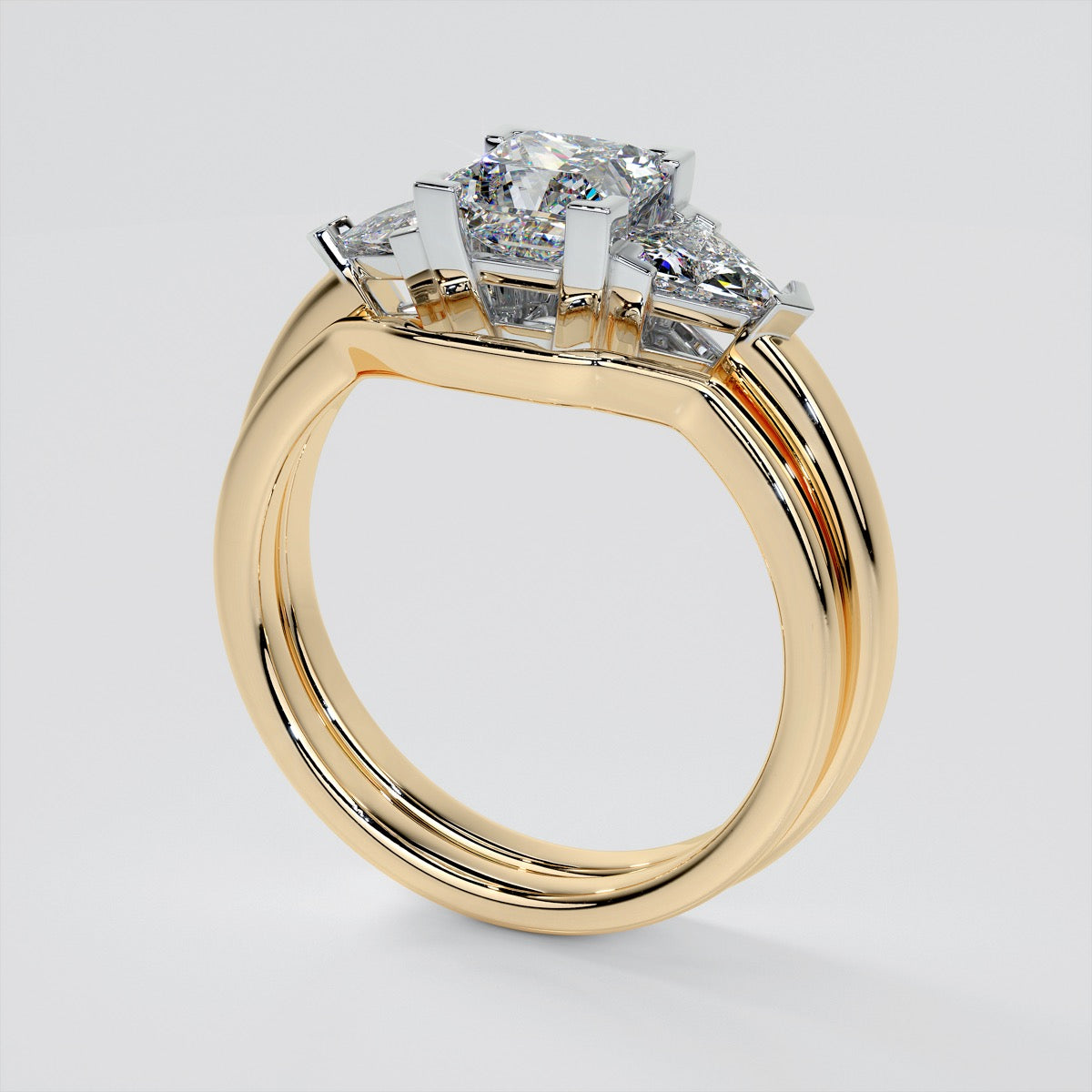 • Princess Cut Three-Stone Wedding Set With 2 Matching Bands
