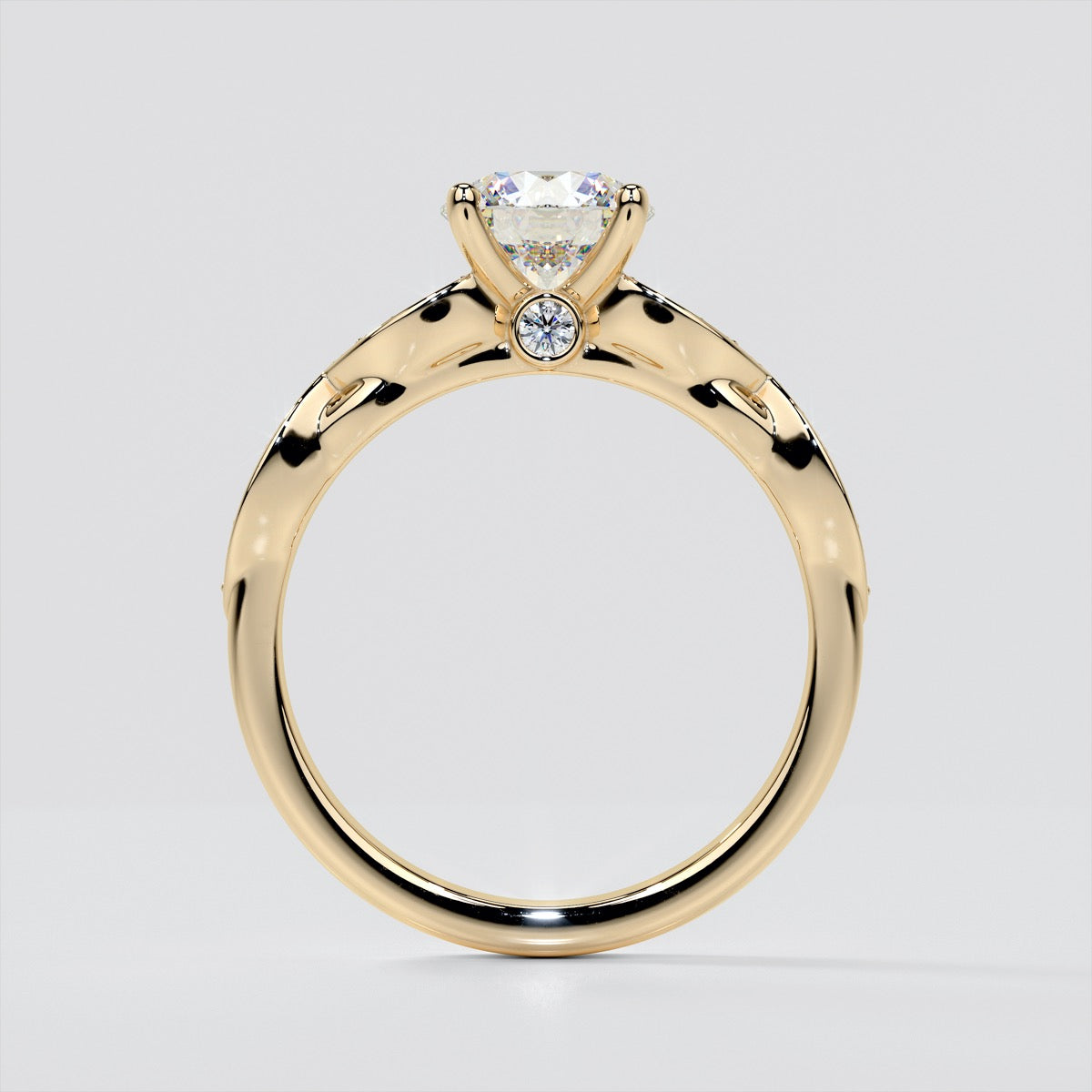 Show her your true and eternal love with this infinity inspired engagement ring. Mesmerize her with the luminous sparkle that radiates from the stunning round cut center adorned by a beautifully unique criss-cross band decorated with brilliant accents cascading down the cathedral style band.