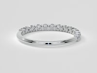 This band showcases ethereal diamonds that seem to dance along the upper half of this delicate and dazzling wedding band. The floating bezel setting creates a truly spectacular and mesmerizing look, capturing the magic of your love story.