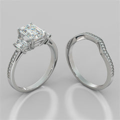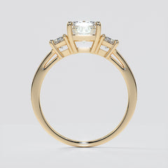 Emerald Cut Three-Stone Engagement Ring With Trapezoid Accents