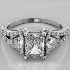 This exquisitely stunning beauty holding a 1.50Ct Radiant Cut center stone and embellished by trillion accent stones is further accented by a split shank design that will truly capture her heart forever.