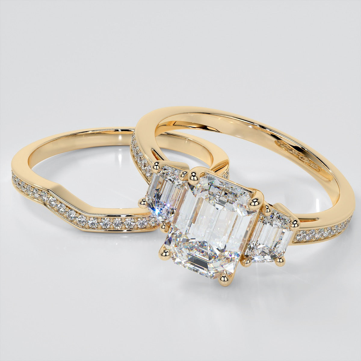 Emerald Cut Three-Stone Engagement Ring With Trapezoid Accents