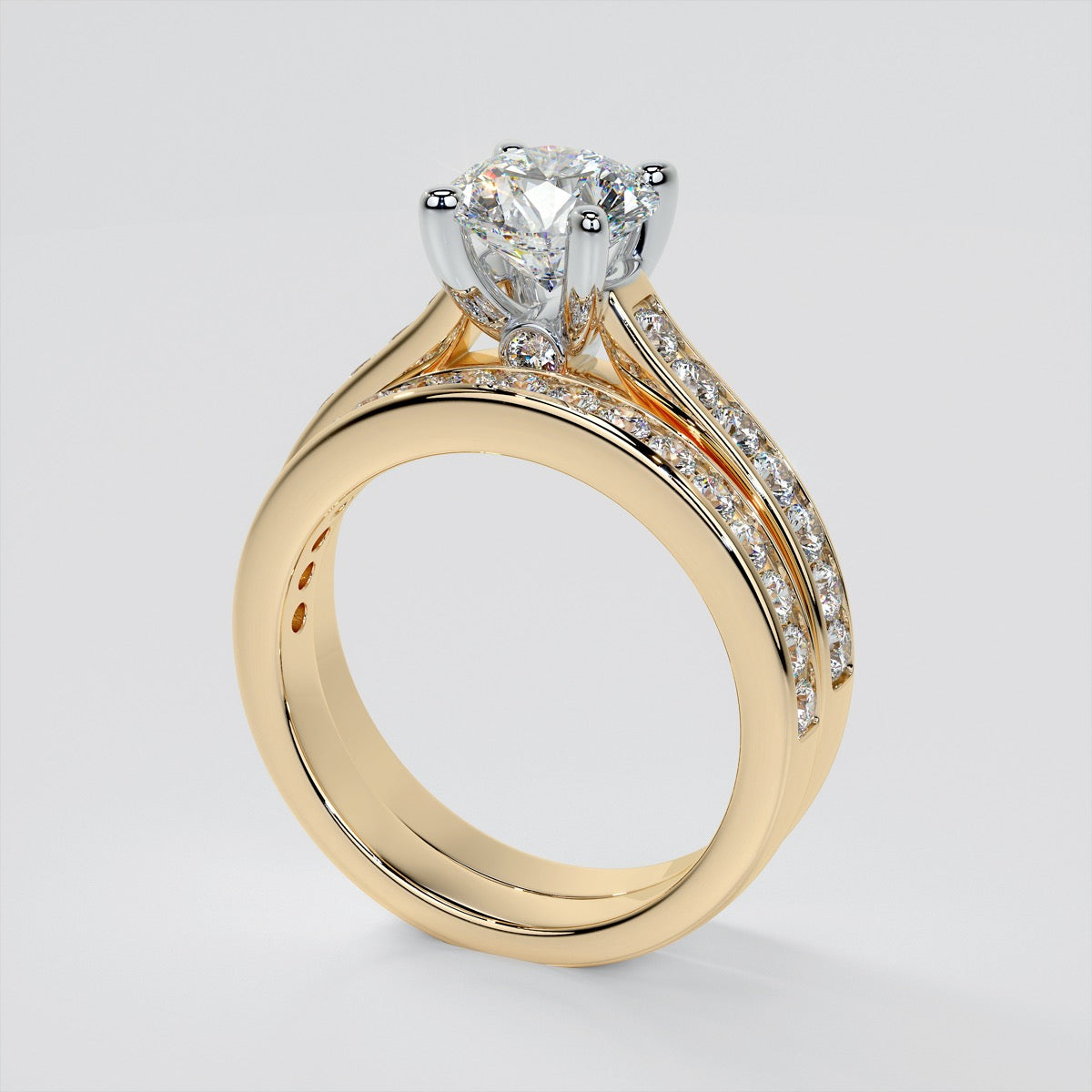 Round Cut Cathedral Wedding Set With 2 Matching Bands