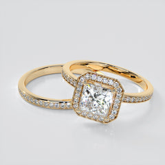 Princess Cut Pavé Style Halo Wedding Set With Accents