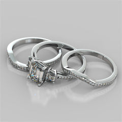 Radiant Cut Three Stone Wedding Set With Trapezoids