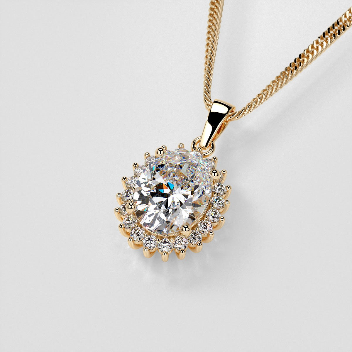 Shop no more for that extra something you’ve been looking for with this brilliant pendant. This stunning center stone is a classic beauty while the simulated diamond halo radiates like the sun. Pendant features a bail slide that always sits flush on your décolleté. The ideal touch to any day or night outing or for the everyday goddess.